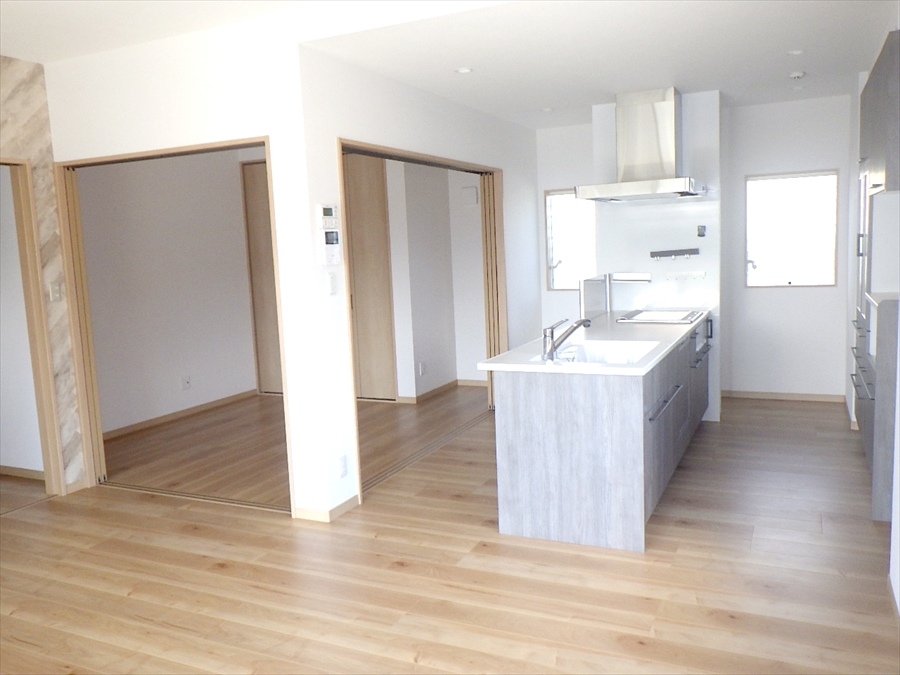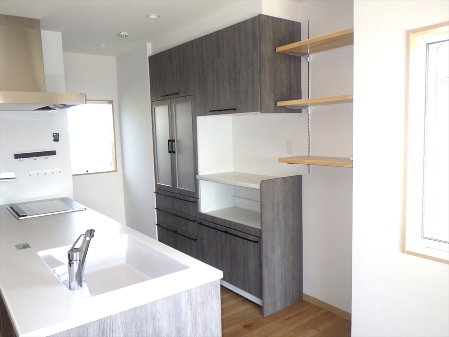 対面キッチン カウンターキッチン システムキッチンIHクッキングヒーター 食器棚付